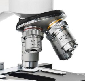 Los objetivos que vienen con el BRESSER Erudit DLX son de alta calidad, todos en formato DIN. Incluye objetivos de 4x, 10x, 40x y un notable 60x, siendo los de 40x y 60x retráctiles para evitar daños accidentales. Con el amplio campo ocular de 10x, se puede lograr un aumento total que va desde 40x hasta 600x, proporcionando una versatilidad considerable para diversas aplicaciones.