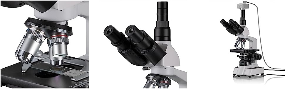 El cabezal trinocular giratorio de 360° con ajustes personalizados de distancia interpupilar y compensación de dioptrías añade comodidad y flexibilidad en el uso. Además, la iluminación LED regulable es otro punto fuerte, ya que permite adaptar la luz a diferentes condiciones de observación.