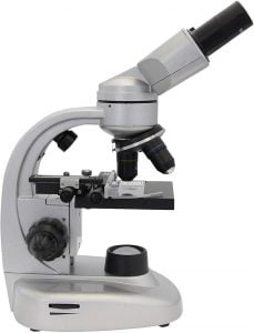 Este microscopio es ideal para los niños y jóvenes que desean iniciarse en el mundo del análisis de muestras de diversos tipos, pues es bastante sencillo y fácil de utilizar. Uno de sus puntos más fuertes es el hecho de que cuenta con una iluminación interna que tiene una plataforma giratoria con la que se pueden ajustar diversos filtros de color.